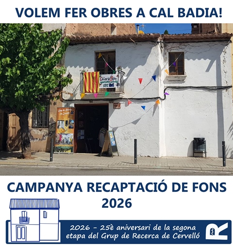 L’any 2005 l’Ajuntament de Cervelló ens va cedir Cal Badia, una de les primeres cases que es van construir al poble, amb la idea de poder fer un ecomuseu i la recreació d’un habitatge del segle XVIII, el problema era l’estat de l’edifici, i encara que s’han fet algunes millores, està molt lluny de trobar-se com pensàvem llavors que estaria després de vint-i-un anys.