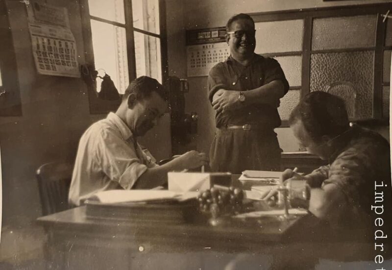 Santiago Martí, Pepe Bassons i Antonio Pallarés (xofer del camió), i l’Anna M. de Vallirana que era recepcionista.