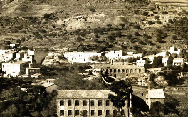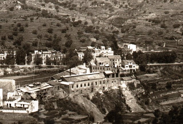 Detall postal dels anys 1930 . Entre la “Cristaleria Cervellonense” i la Torre de les Monges s’ha construït un altre forn, conegut com “Cal Bordas”.