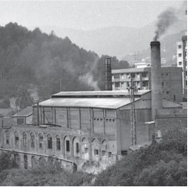 Fotografia que es trobava a les oficines de la fàbrica. Podem veure que ja s’ha construït la xemeneia quadrada.