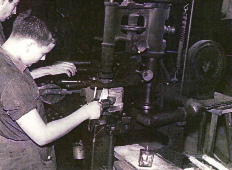 Salvador Perameya i Pere Duran i l’aprenent que observa atentament. Aquest aprenent, segons Luís Vela, era conegut com “Luís el gato”.