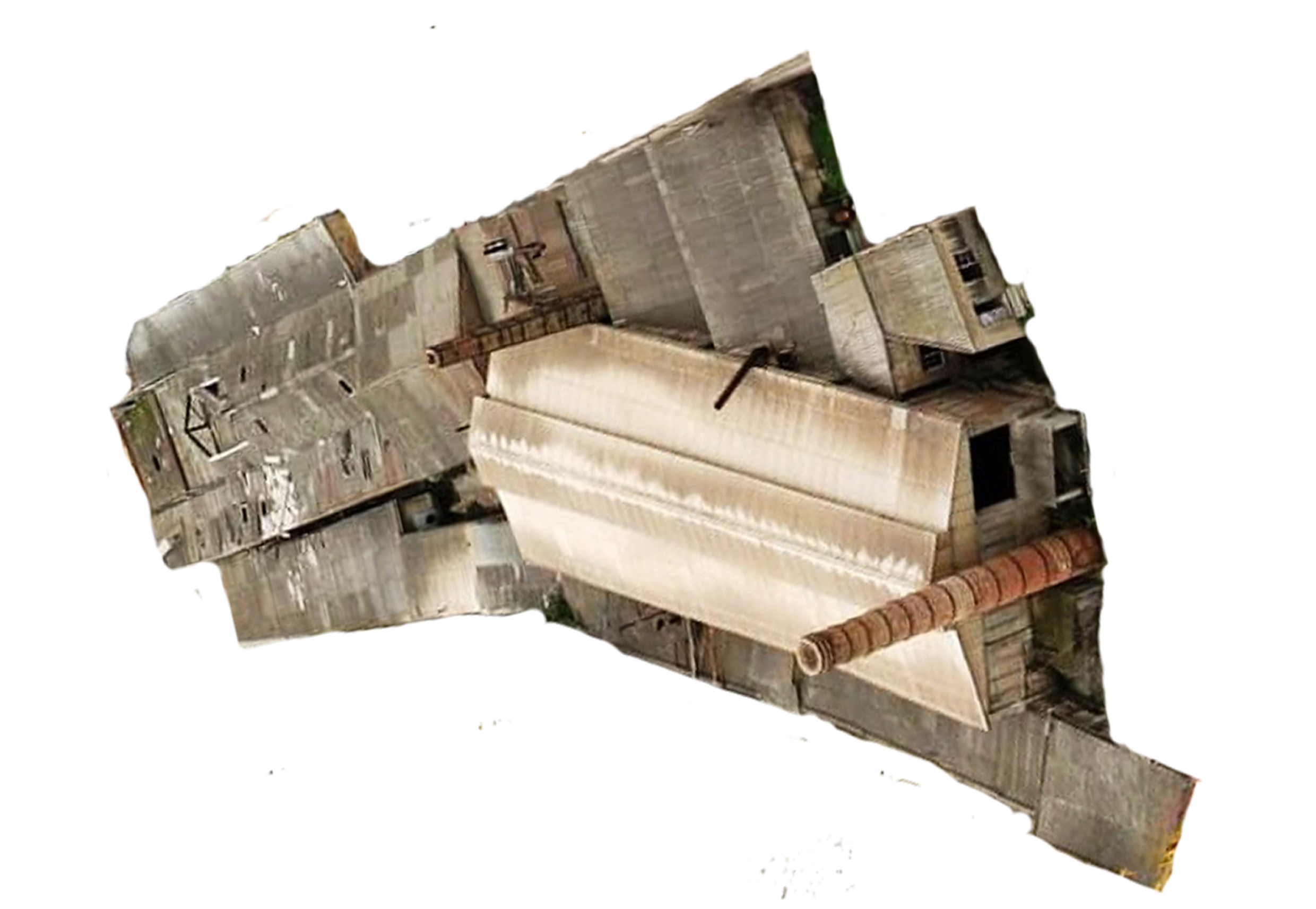 En aquesta imatge de les taulades de la fàbrica veiem com la seva estructura correspon al plànol anterior.